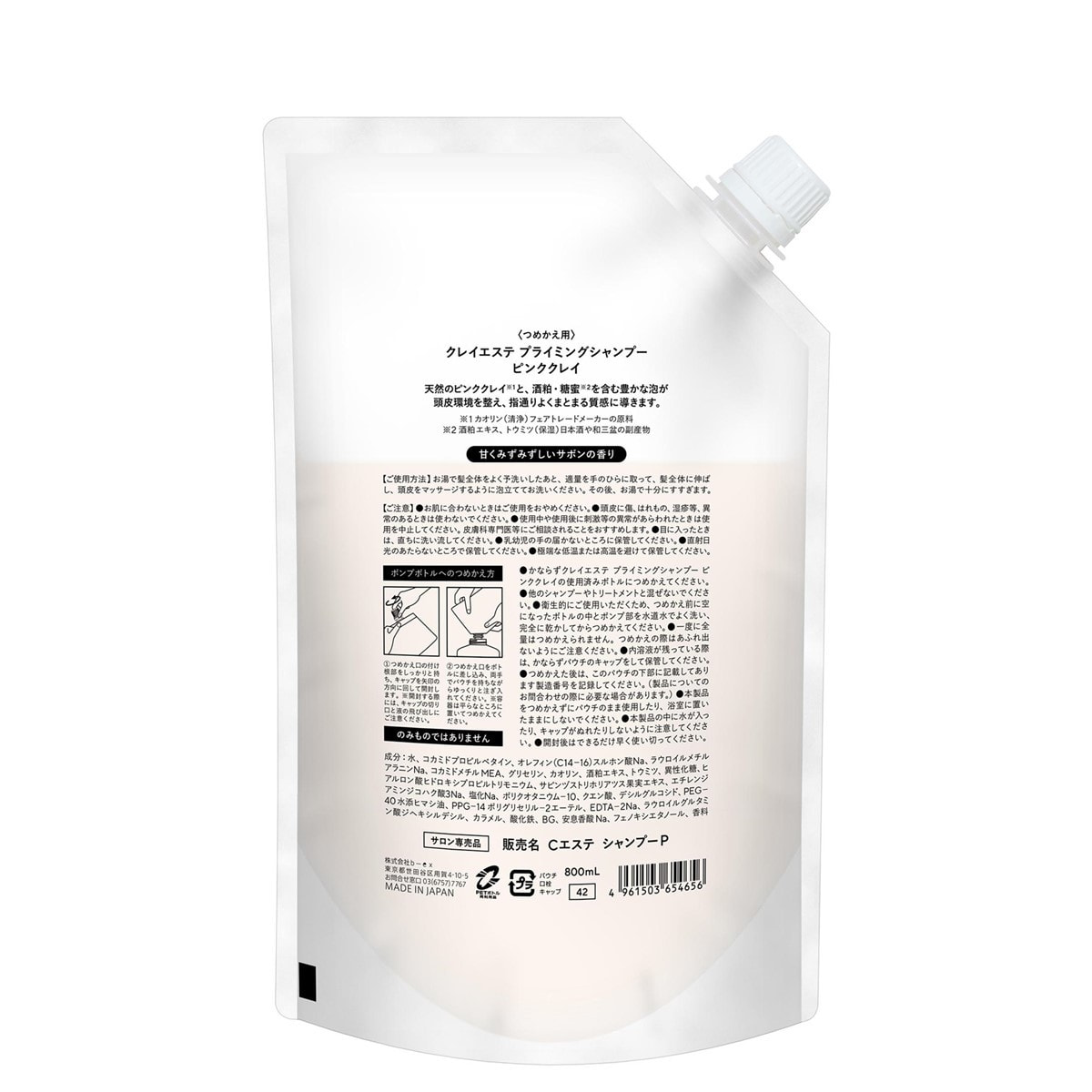 商品名:クレイエステ プライミングシャンプー ピンククレイ 800ml(パウチ)