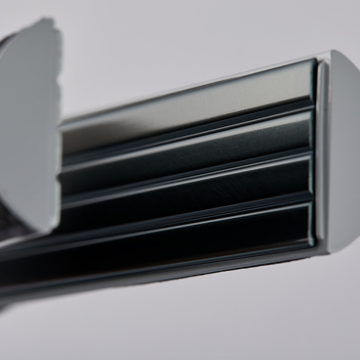 角を削ぎ落とした形状とプレートを覆う本体部を極限まで薄くしたことで、根元のキワまで攻めやすく、クオリティの高い仕上がりを可能にします。