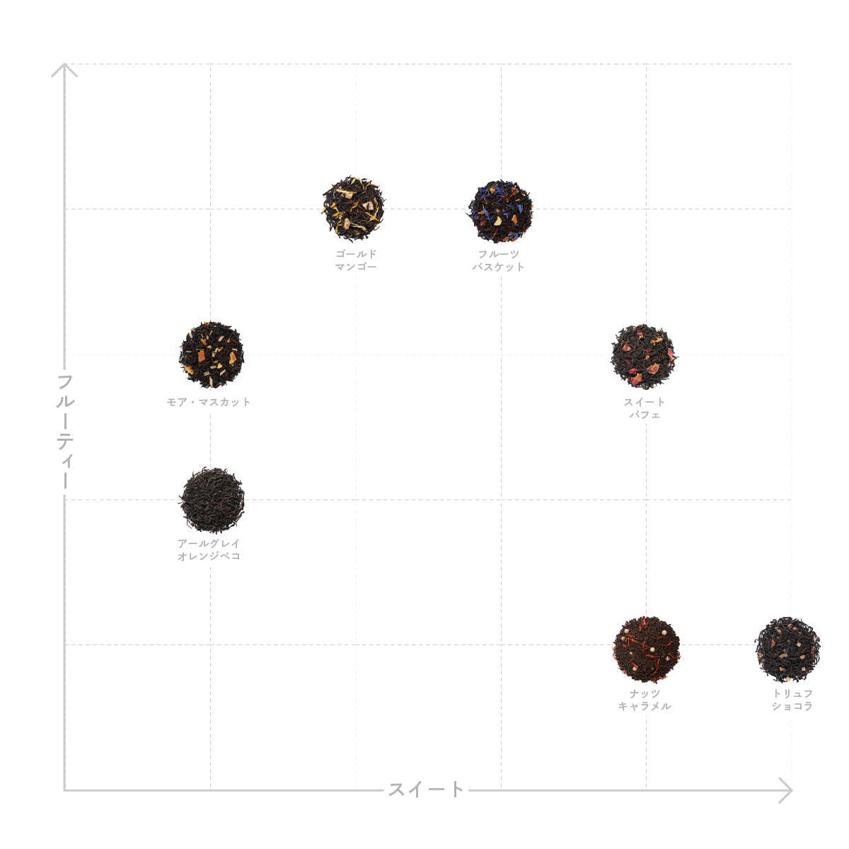 コクが特徴のアッサム紅茶にマカデミアナッツの魅力的な香ばしさと甘いキャラメルのハーモニー。